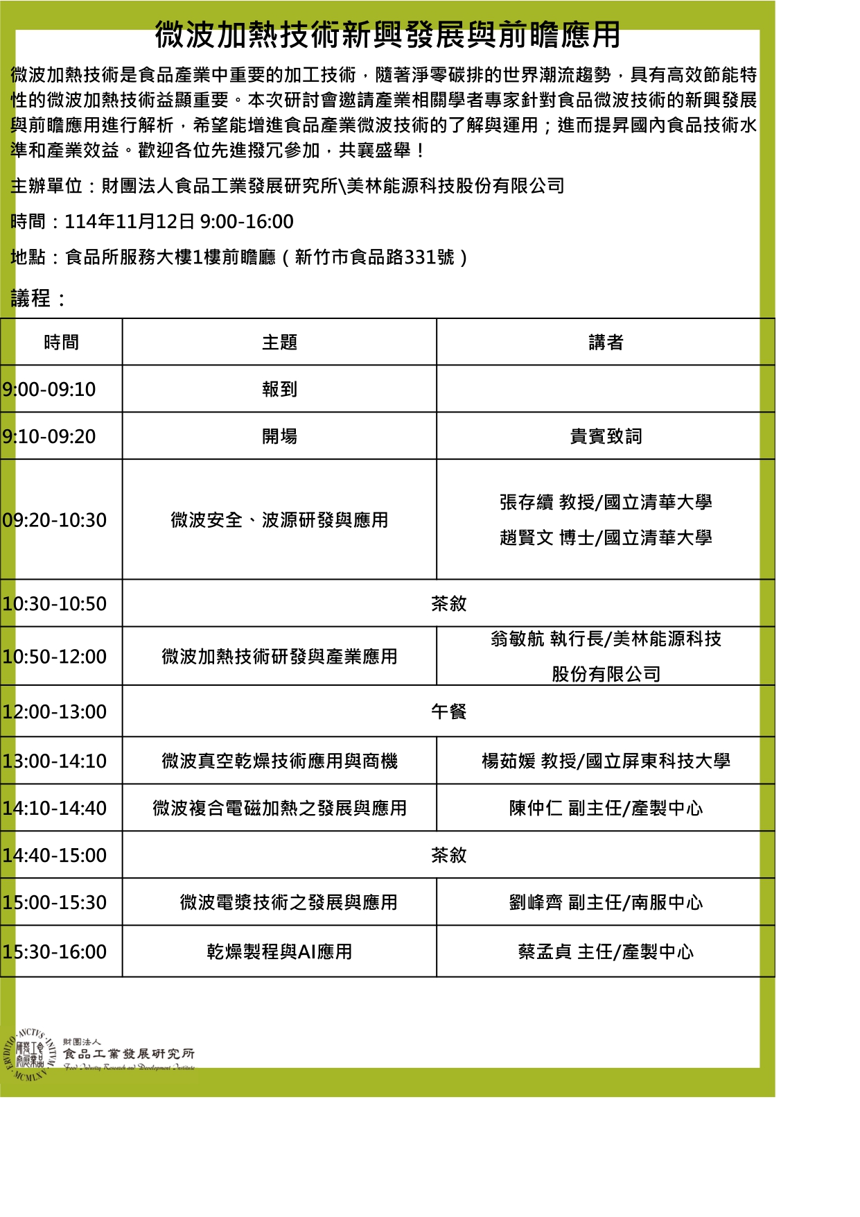 主辦單位:財團法人食品工業發展研究所 & 美林能源科技股份有限公司