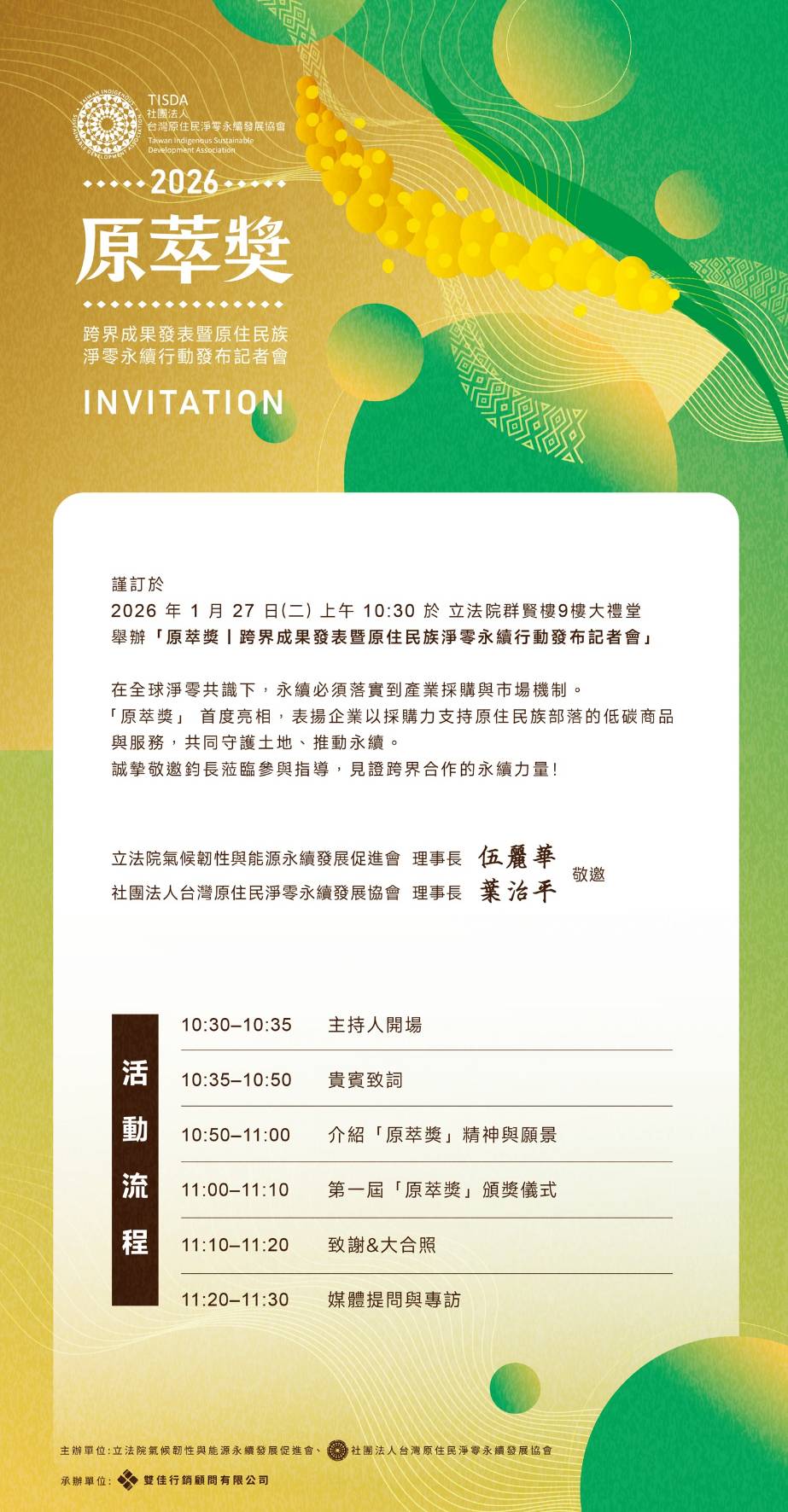 活動名稱:原萃獎—跨界成果發表暨原住民族淨零永續行動發布記者會