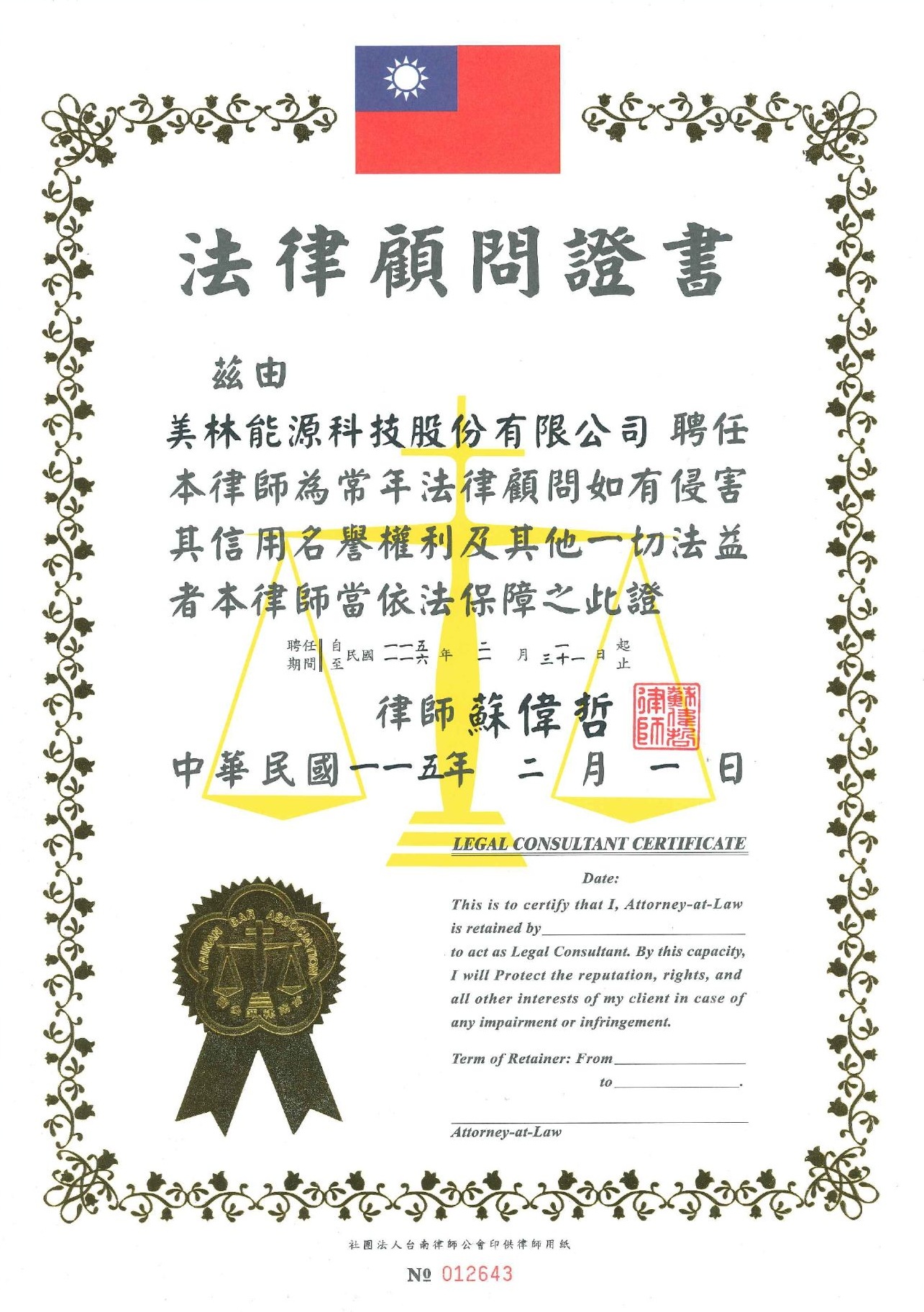 本公司已正式聘請 實踐法律事務所 之 蘇偉哲 律師擔任常年法律顧問。