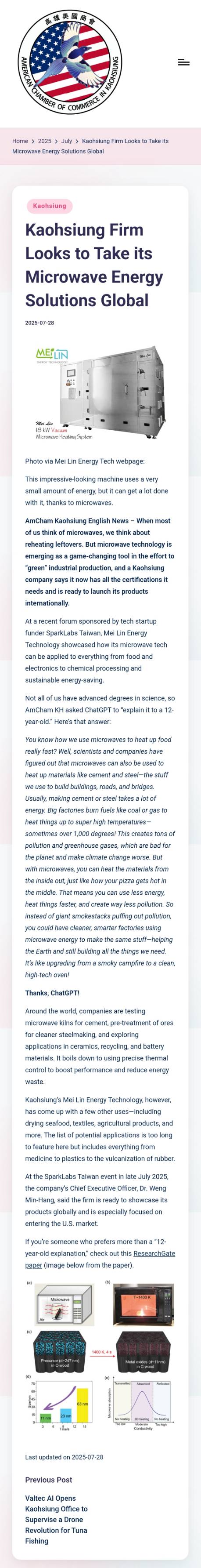 資料來源:https://amchamkhh.com/2025/07/kaohsiung-firm-looks-to-take-its-microwave-energy-solutions-global/